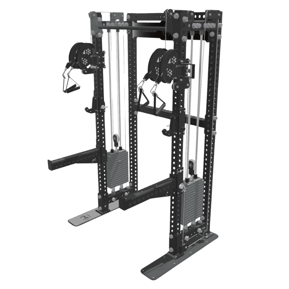 Each weight stack features two independent cables, allowing for dynamic resistance options. Use a single cable handle for a 2:1 resistance ratio, perfect for smooth, controlled movements. Attach both ends simultaneously to activate a 1:1 fixed pulley configuration, delivering true weight resistance for heavier lifts. This unique setup supports a wide range of exercises targeting the upper body, lower body, and core — including rows, curls, pulldowns, presses, and more.